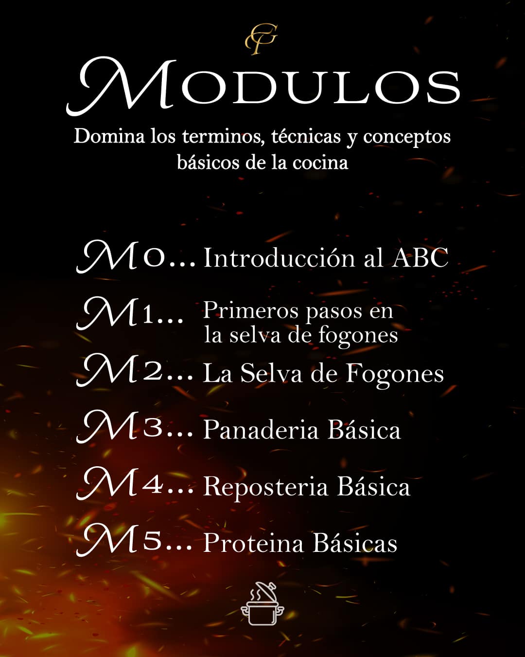 • Aprende técnicas esenciales de cocina → 45 lecciones en video HD con técnicas paso a paso y explicaciones claras (cortes, salsas, mise-en-place, estofados, escabechados).